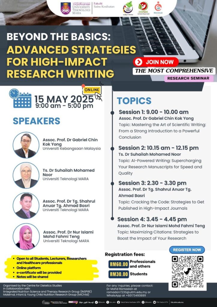 Organized by UiTM’s Faculty of Health Sciences, this seminar delivered actionable strategies for publishing success and drew participation from students, researchers, and healthcare professionals across disciplines.