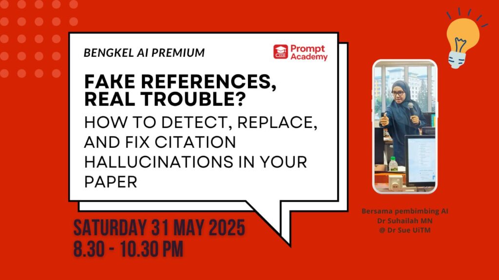 This AI Premium workshop, facilitated by Dr Suhailah MN (Dr Sue UiTM), addressed one of the most common and frustrating problems in AI-assisted academic writing: fake citations and hallucinated references.
