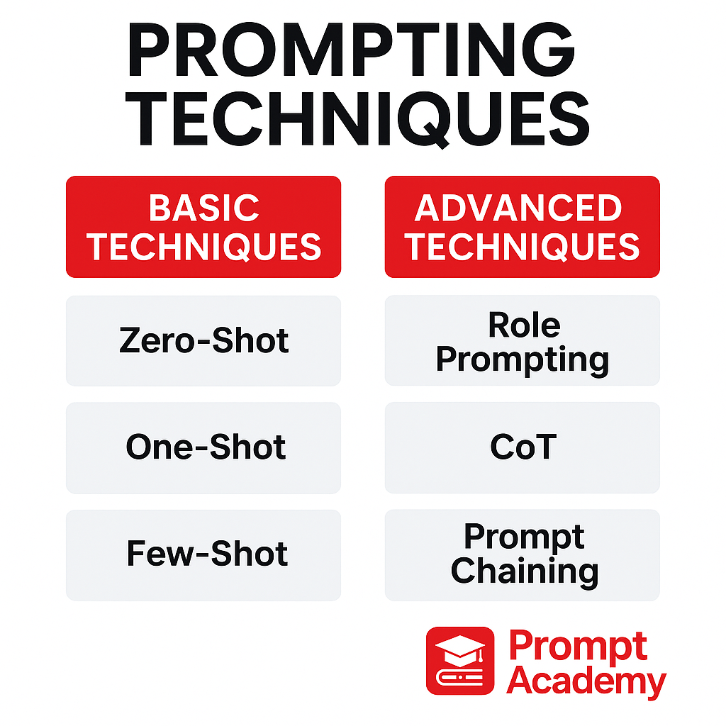 • Zero-shot prompting: Asking the AI without giving any examples.